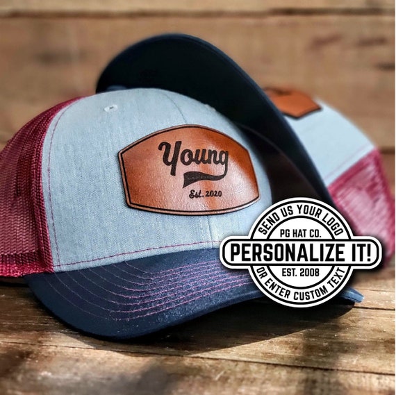 Custom Leather Patch Trucker Hat Richardson 111 Laser Engraved Etsy